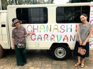 フィリピンおはなしキャラバン車 ボディの文字は紙にマジックペンで書いた。