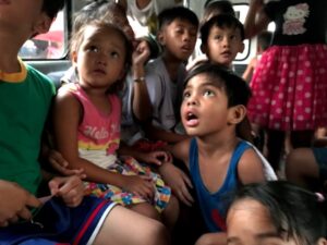 時折、大半の子どもは英語、時折、タガログ語が混じる、私は日本語。三カ国後が入り混じるのですが、人形劇はどんどん進みました。