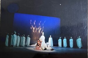 舞台では人魚姫が魔女にナイフを投げ、泡となって天に召されます。 その後、観客の子どもたちが囁き合いました。