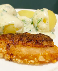 「ステイゲット・フレスク」は、厚切りの豚バラをカリッと焼き、パセリソースとジャガイモを添えた“デンマークの国民食”です。日本のベーコンとは違い、脂っこさがなく後味も軽やか。